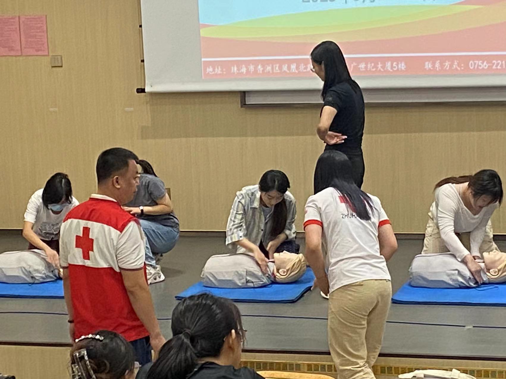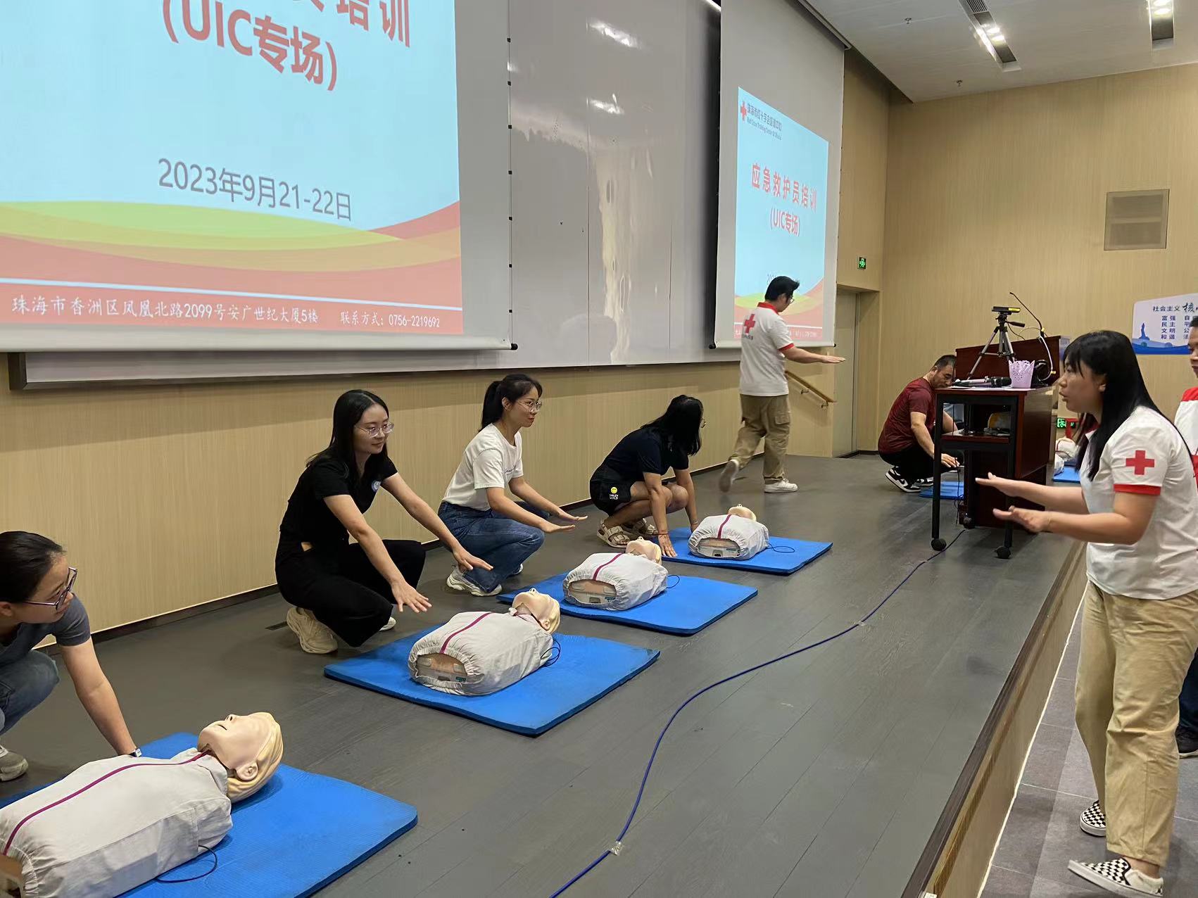 2023年9月21日至2023年9月22日,我校MHEO与珠海市红十字会联合主办了救护知识培训课程。此次培训课程主要面向学校教职工展开,邀请了珠海市红十字会专业的急救讲师为参训学员授课。课程为期两日,培训内容包含心肺复苏、创伤包扎及简易AED应用等,参训学员完成课程培训后将现场参加急救培训,并获取相应急救员资格证。