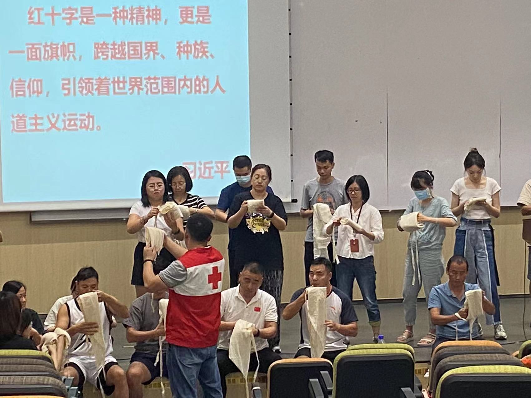 在培训过程中,红十字会讲师为大家现场演示并讲解了遭遇突发事故的现场急救,如何在抢救的黄金时间给生命垂危的人做心肺复苏,如何排除气道异物梗阻。全部学员都亲身体验了心肺复苏及创伤包扎的基本操作,并很快掌握了正确的操作方法。在轻松愉快学习的氛围中,大家均有所收获,并对急救知识有了更深刻地了解。